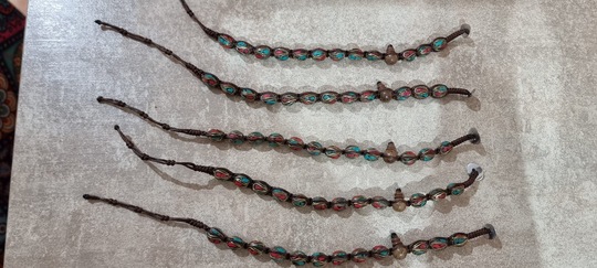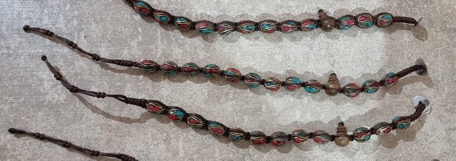 Questo bracciale artigianale cattura la luce con la sua raffinata combinazione di metalli lavorati e pietre colorate, che ricordano le gocce di sole riflesse sulla terra. Ogni dettaglio riflette l’abilità manuale e la connessione con la natura, perfetto per chi cerca un accessorio elegante e spirituale.